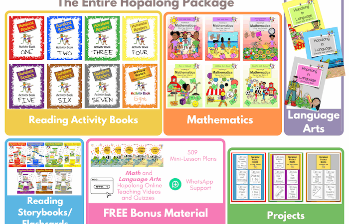 Get ALL the Hopalong Textbooks to build the foundation of a young learner (4+ to 7 year olds) in all the main subject areas. The Entire Reading Programme Mathematics (Infant Books) English Language (Infants and Standard One) and Project Based Learning (Infants and Standard One) (Social Studies and Science while developing Arts, Crafts, Music, Spanish … Continue reading The total Package